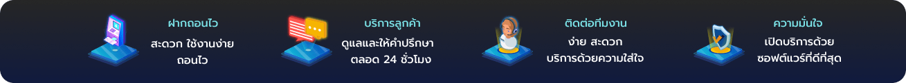 - ฝาก-ถอนอัตโนมัติรวดเร็วภายใน 30 วินาที